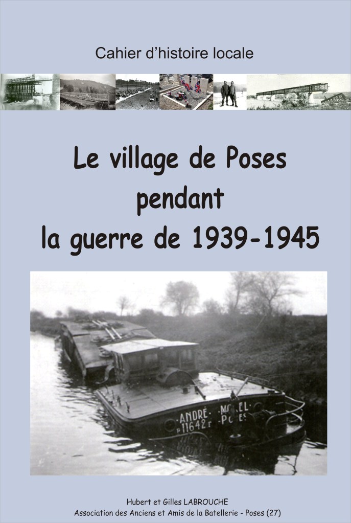 Le village de Poses sera pendant la guerre un site stratégique du fait même de la présence du barrage et des écluses. En juin 1940, le village verra les Allemands arriver en traversant la Seine et les posiens partis le plus souvent en exode retrouveront leur village bouleversé et occupé quelques semaines après. L’occupation sera (sur)vécue avec toutes les difficultés et les drames que l’on sait. A l’été 1944, après les débarquements alliés en Normandie, Poses sera un site de passage stratégique pour l’occupant en déroute : 16 000 véhicules allemands et près de 100 000 hommes fuiront la Normandie en traversant la Seine par la rue du Bac et le pont de bateaux mis en place à son niveau. Dans cet ouvrage, Gilles LABROUCHE retrace, avec les souvenirs et les archives de son père et de l’association, cette page de notre histoire locale. (Association des Anciens et Amis de la Batellerie de Poses – Cahier d’histoire Locale- Gilles & Hubert Labrouche)