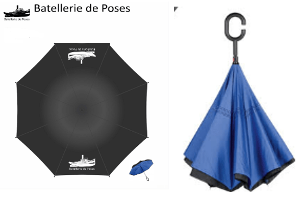 Nous vous proposons à la vente un superbe parapluie aux couleurs de la batellerie posienne au prix de 25 Euros.