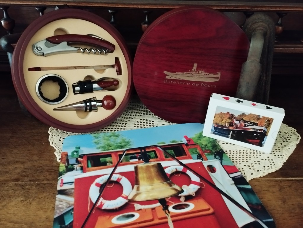 Nous renouvelons nos offres et pour partager des souvenirs aux couleurs de la batellerie de Poses : calendriers, mugs, set « vin », photos…