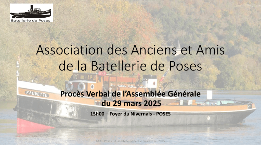 L’assemblée générale de l’association de la batellerie s’est tenue le 29 mars 2025 au foyer du Nivernais à 15h00 : Bilan comptable, bilan moral et programme prévisionnel des nos activités. Un verre de l’amitié a été partagé ! Une bonne trentaine de membres présents et nous vous en remercions.