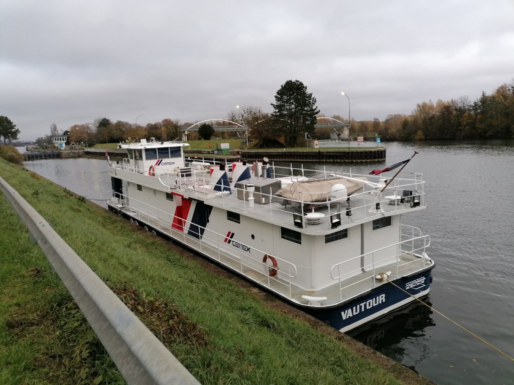 Le Vautour, « son » bateau » est un pousseur de 24 mètres équipé de deux moteurs Caterpillar C18 de 608 CV avec inverseur pour la propulsion principale et un moteur C12 de 390 CV pour la propulsion auxiliaire Schottel. Les convois atteignent un fret de l’ordre de 5 000 tonnes.