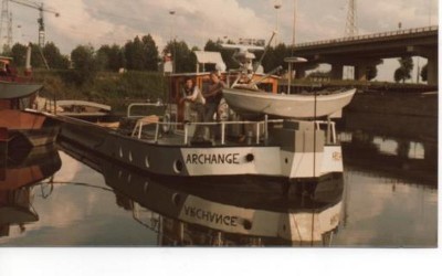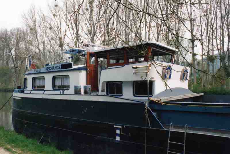 A l’origine d’une longueur de 38 mètres, il a été rallongé en France au chantier du Trait (Seine Maritime) en 54,75 mètres pour la compagnie Citerna. Dans les années 70, vint le déclin des bateaux citernes en France, et il fut vendu à la condition d’être transformé en cales diverses. C’est à cette époque que la famille Salm l’acheta et le transforma en 1975 aux Chantiers Vandenbossche de Villeneuve-la-Garenne et qu’il fut baptisé Archange. Il faisait partie de la série des Jerricans dit « Bidons ».
