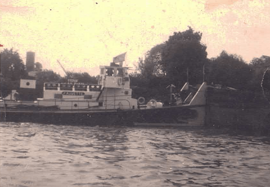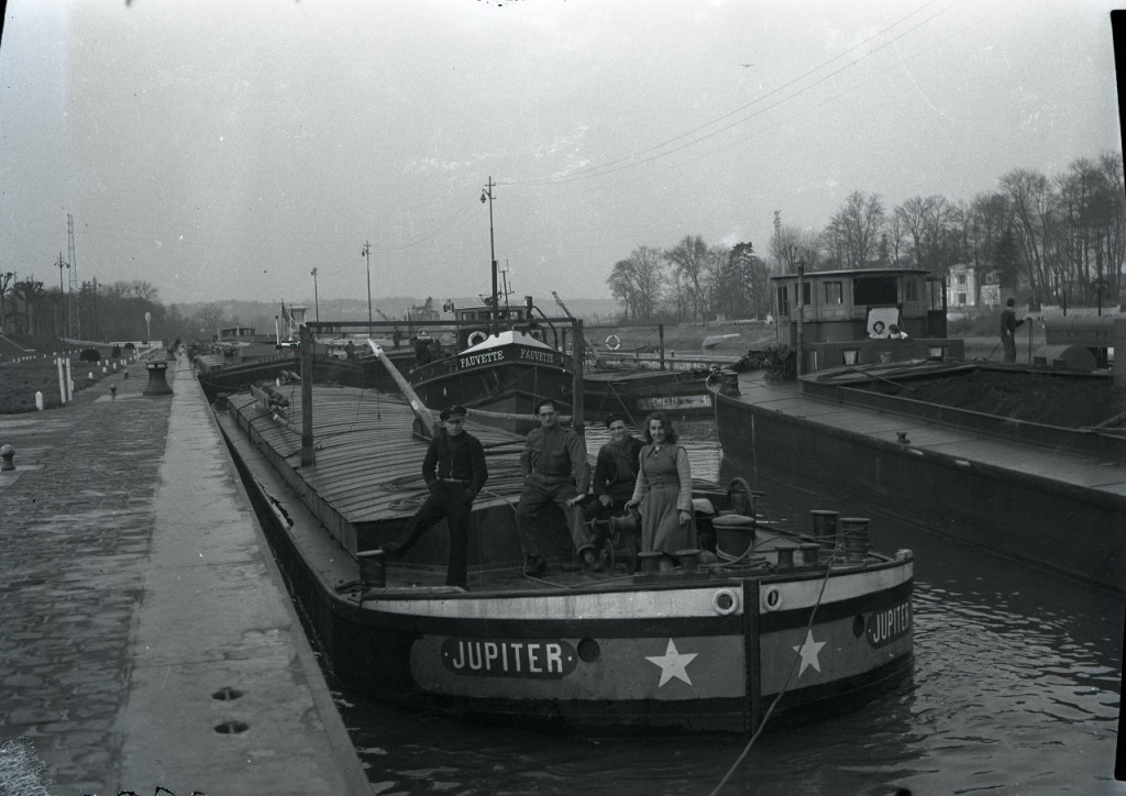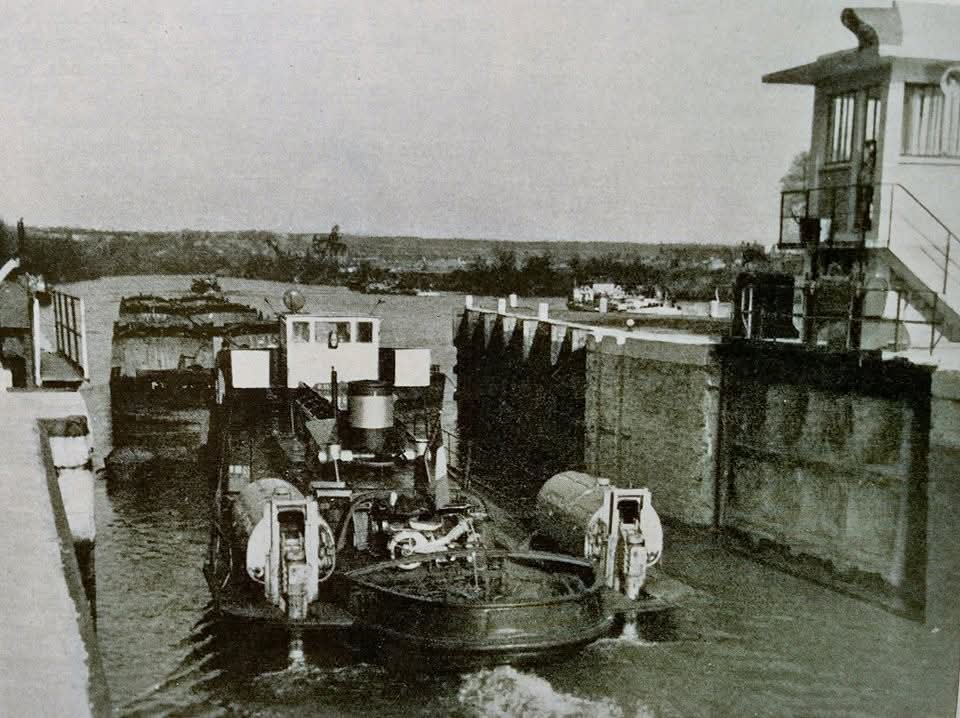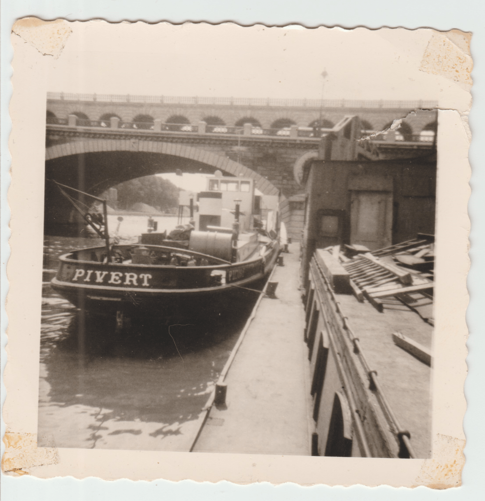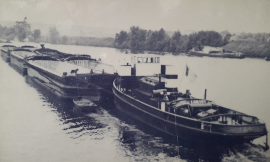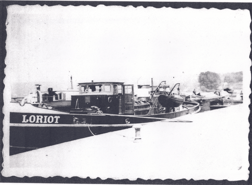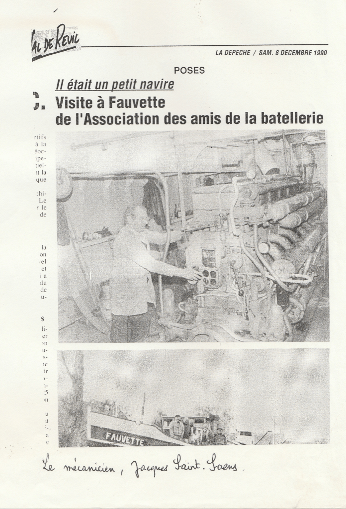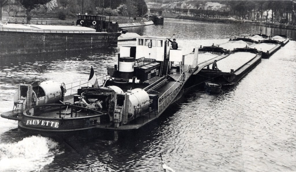 Le Fauvette en pousseur après 1956 avec à l’avant le dispositif de poussage, la suppression des pavois, le plat-bord élargi, et ses deux moteurs « Shcottel » arrière (don de M Brisset)