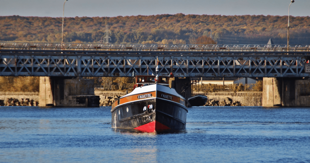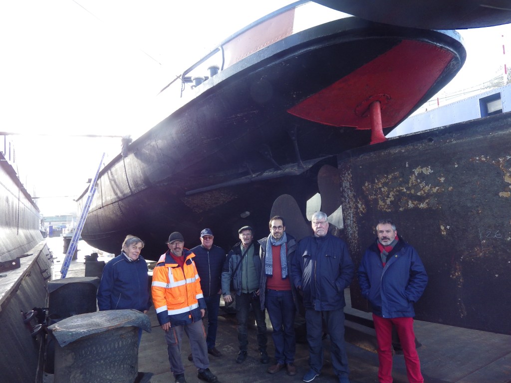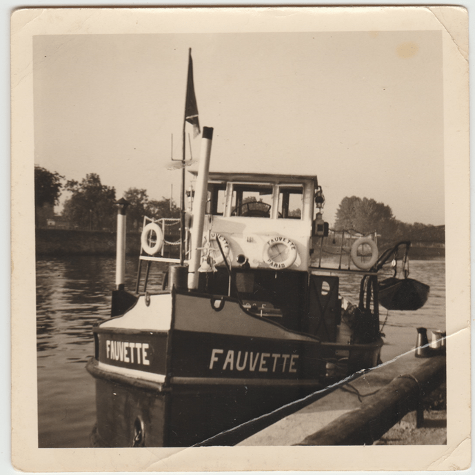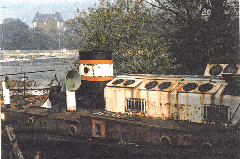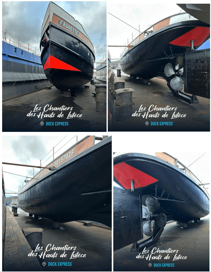 Le Fauvette après son carénage aux chantiers des Hauts de Lutèce (Boulogne-Billacourt)