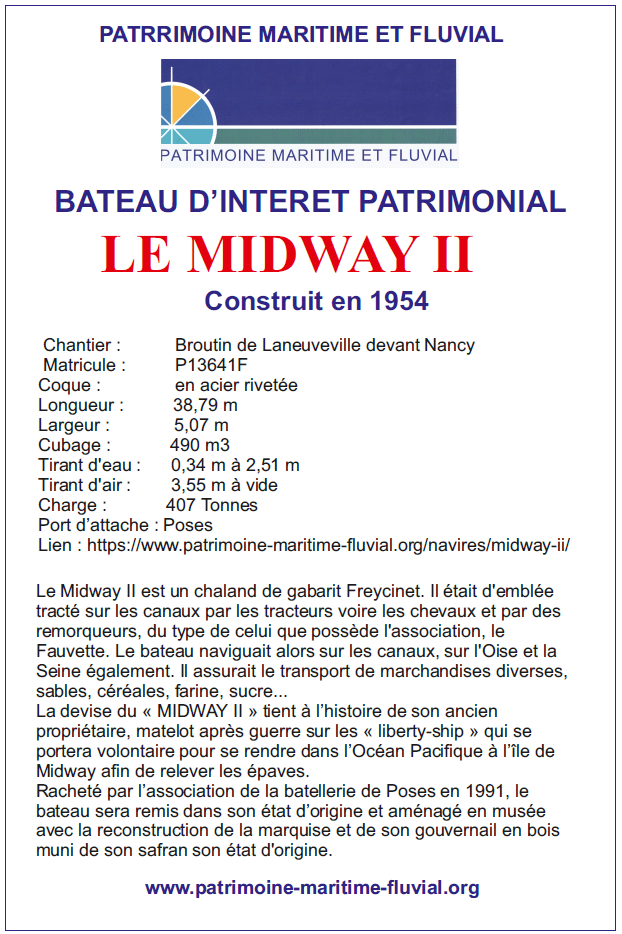 Faites un don pour présrver et restaurer le Midway, le patrimoine marinier et son histoire, comme celle du village de Poses