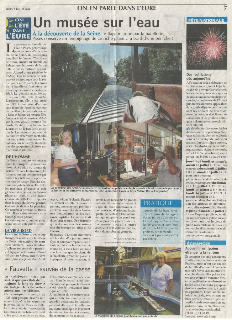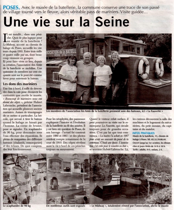- Les débuts de l’association de la batellerie de Poses (reportage France 3 , prises de vue et montage – Philippe Poupardin – 2013)