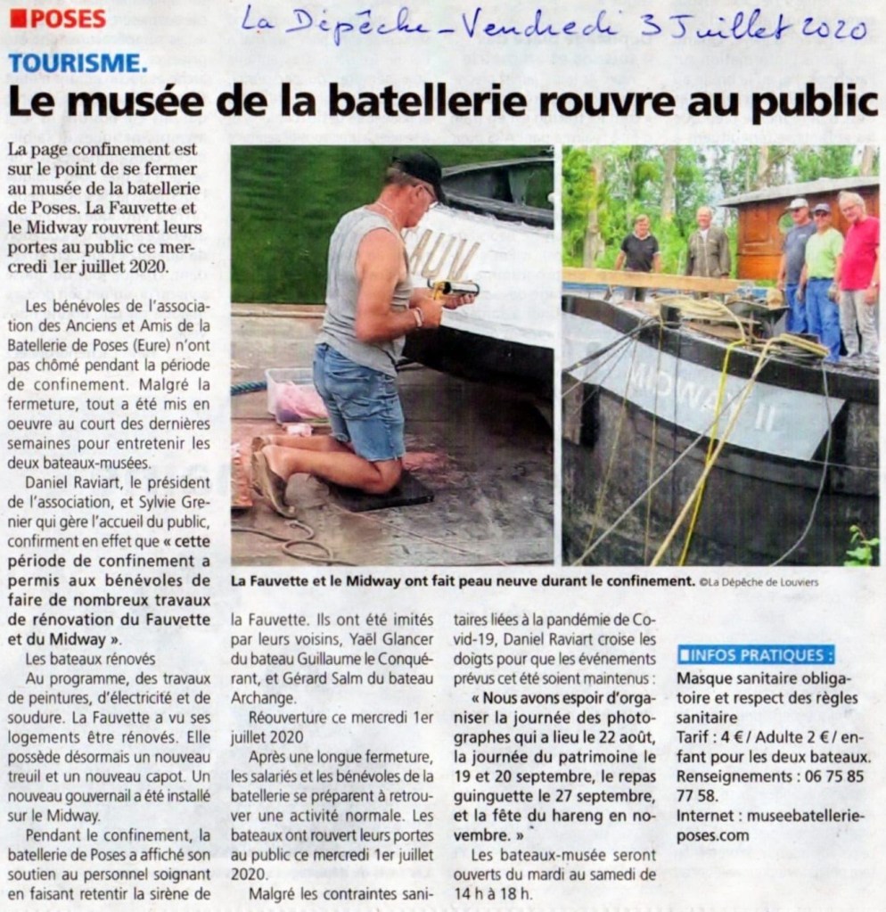 La Batellerie Posienne à Conflans Sainte-Honorine pour les festivités du 62e Pardon National de la Batellerie vue par la Dépêche du 28 Juillet 2021