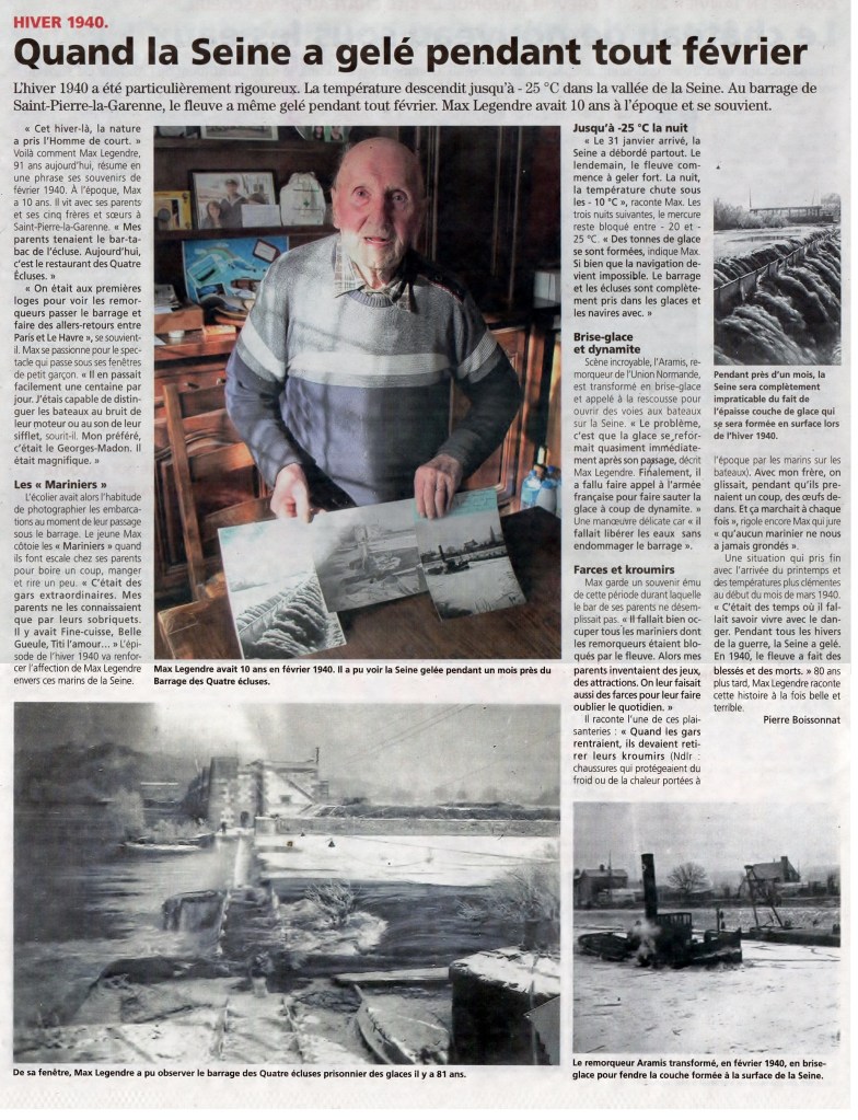 - Témoignage de Jean-Claude GIBERT, ancien conducteur de travaux au service des Ponts-&-Chaussées de la navigation de la Seine (1957-1995), subdivision d’Amfreville-sous-les-Monts – Poses