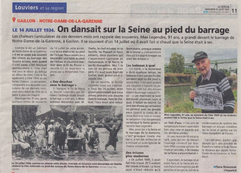 Le témoignage de notre ami Max Legendre sur les étiages de la Seine à Notre-Dame de la Garenne !