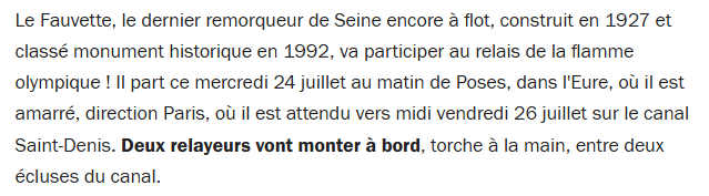 Le Fauvette, dernier remorqueur de Seine encore à flot, va participer au relais de la flamme olympique