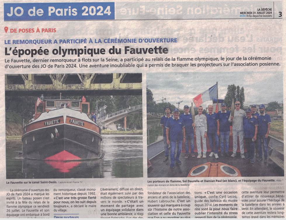Vidéo France 3 du départ du Fauvette vers les cérémonies des JO Paris 2024 : Voir la vidéo