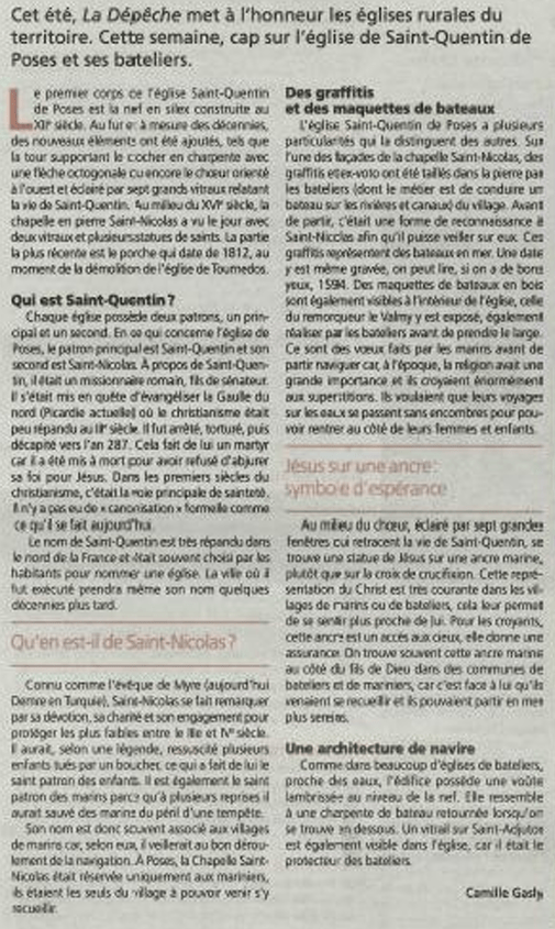L’église Saint-Quentin, gardienne des bateliers posiens depuis le Moyen-Age